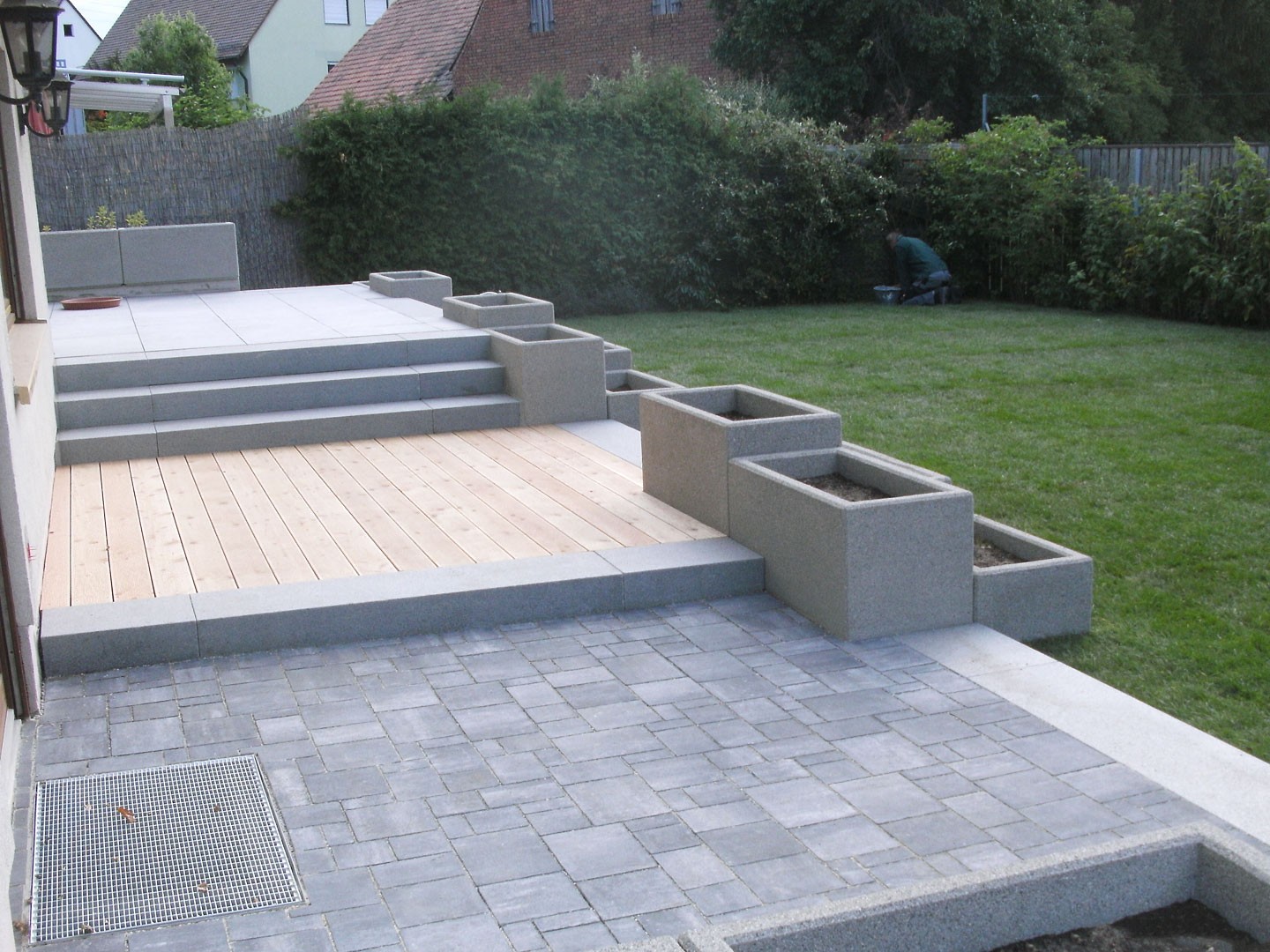Betonverbundplatte „Muschelkalk nuanciert“ mit GranitleisteneinfassungEinfassung mit gleichartigem Einzeiler