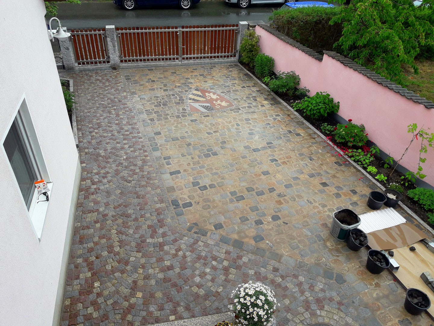 Auf individuelle Kundenwünsche gehen wir dabei sehr gerne ein! Beispielsweise können wir auch Wappen in Ihren Belag einlegen und so ein gepflastertes Unikat erschaffen.